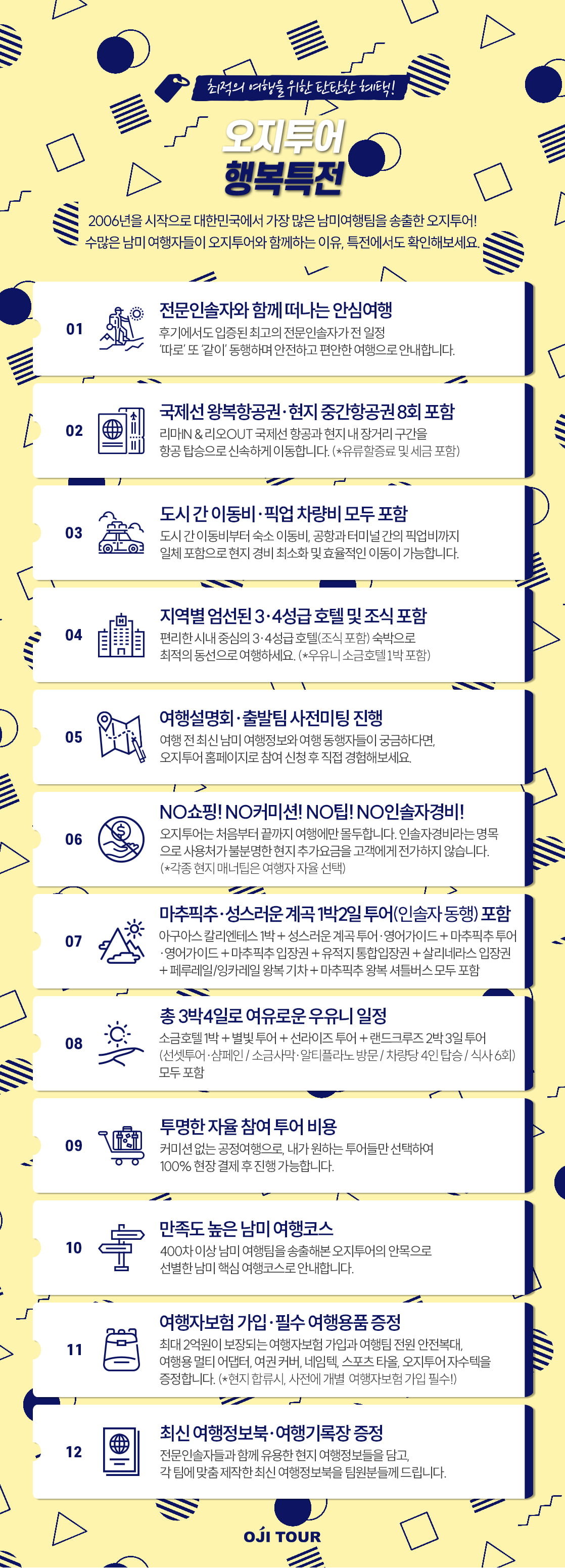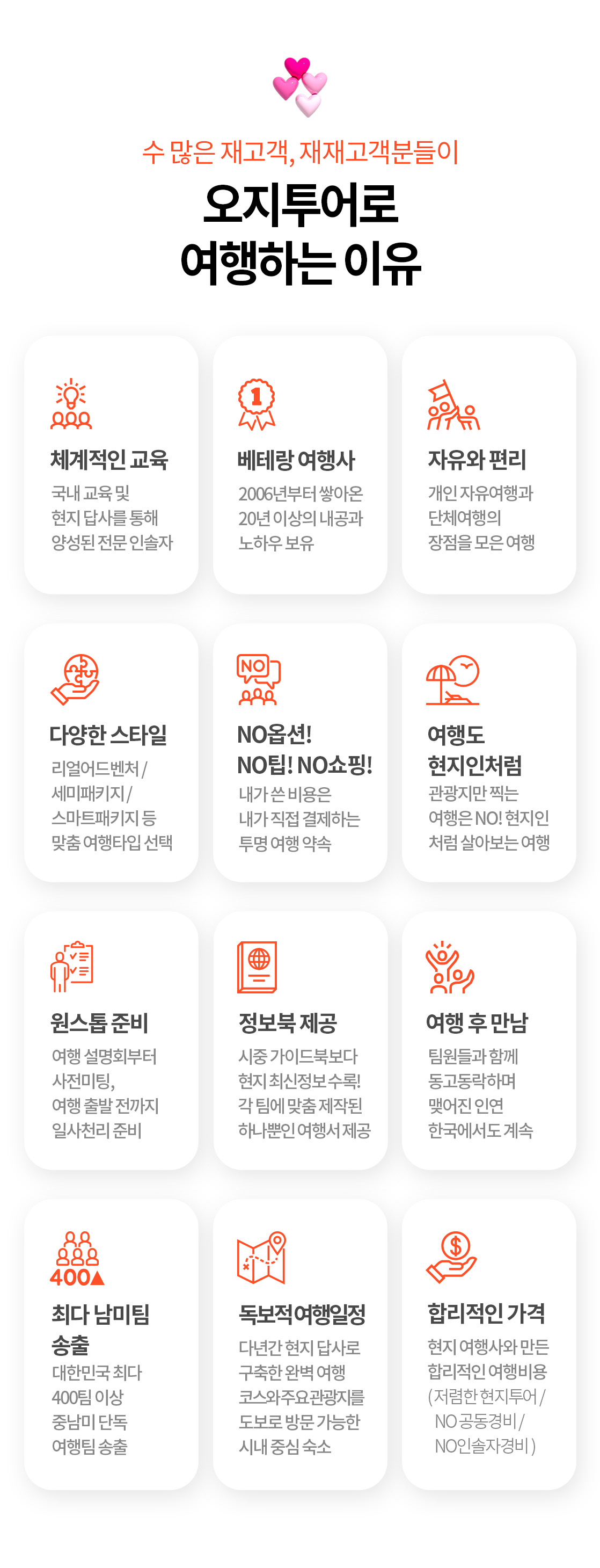◆ 천재지변, 파업 등의 현지 사정으로 인한 일정 변경 및 추가 요금은 (주)오지투어가 책임지지 않습니다.